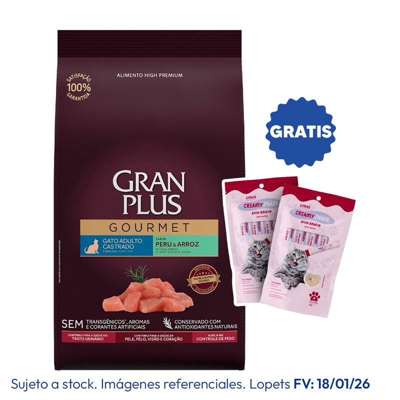Gran Plus Gourmet Gato Castrado Pavo Y Arroz 10 kg