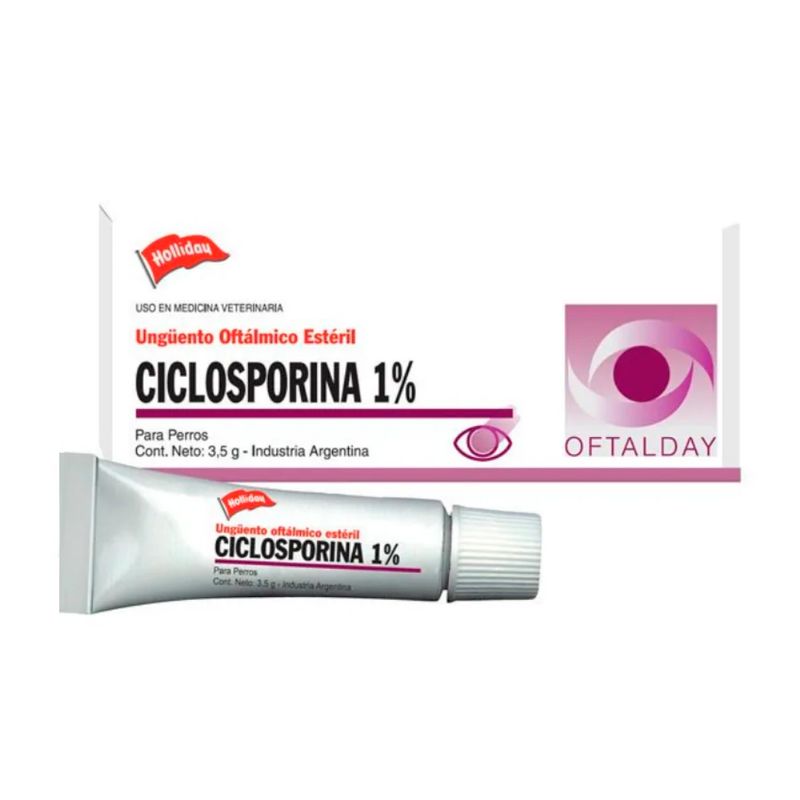 Reduce la inflamación ocular al inhibir la respuesta inmune.