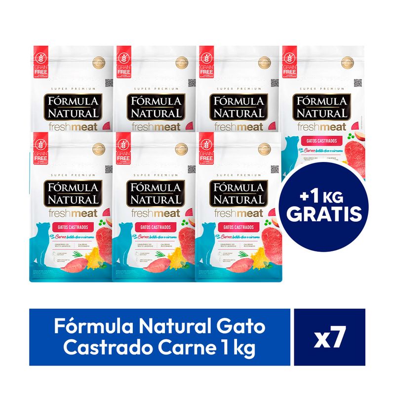 Pack X7 Fórmula Natural Fresh Meat Gato Castrado Carne 1 kg