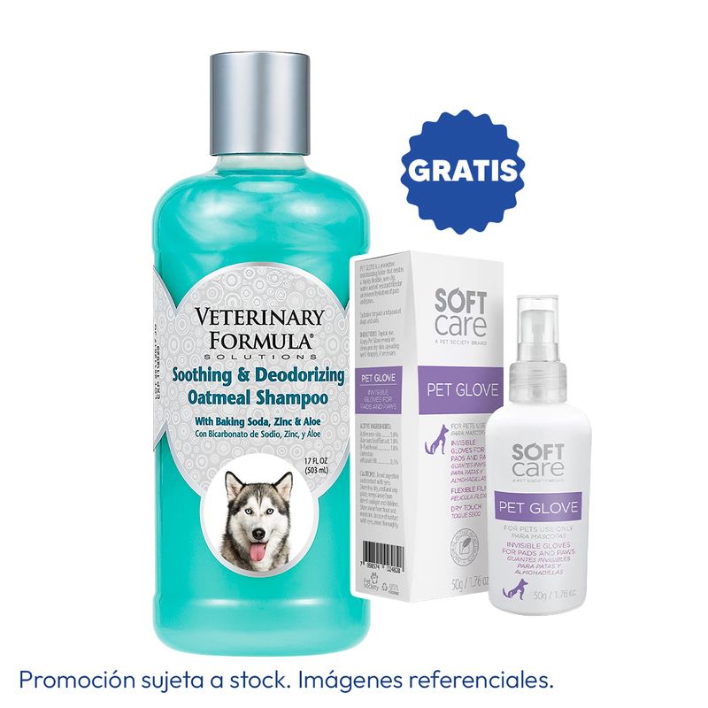 Ingredientes naturales: Formulado con avena, bicarbonato de sodio, zinc y aloe vera, que ayudan a calmar la piel irritada y desodorizar el pelaje de su mascota.